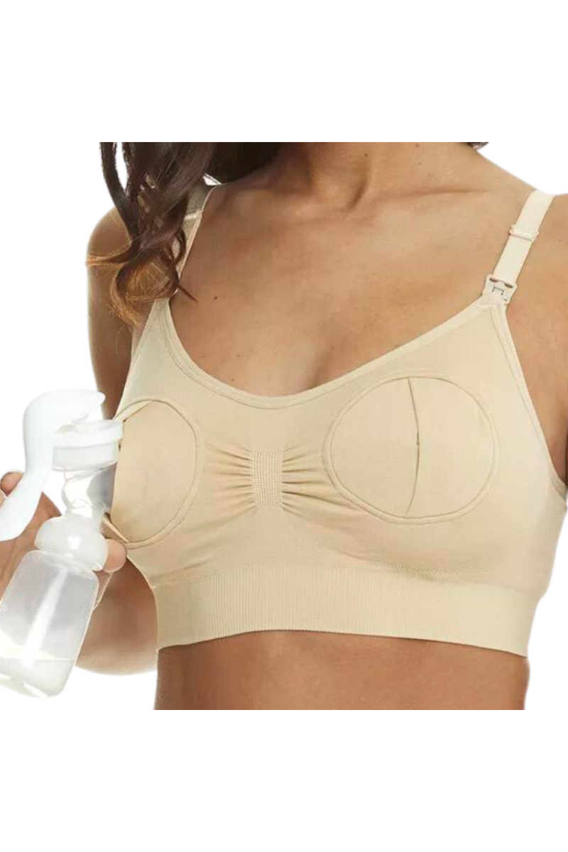 The Hands Free Brest Pump Bra adjusts to your ever changing shape and cup size. Its wire-free and seam-free design provides great support and everyday comfort during pregnancy and while nursing/expressing. The easy open support hold access along with the one-handed easy “open-and-close” nursing clip makes the hands free expressing and breastfeeding process effortless and convenient.