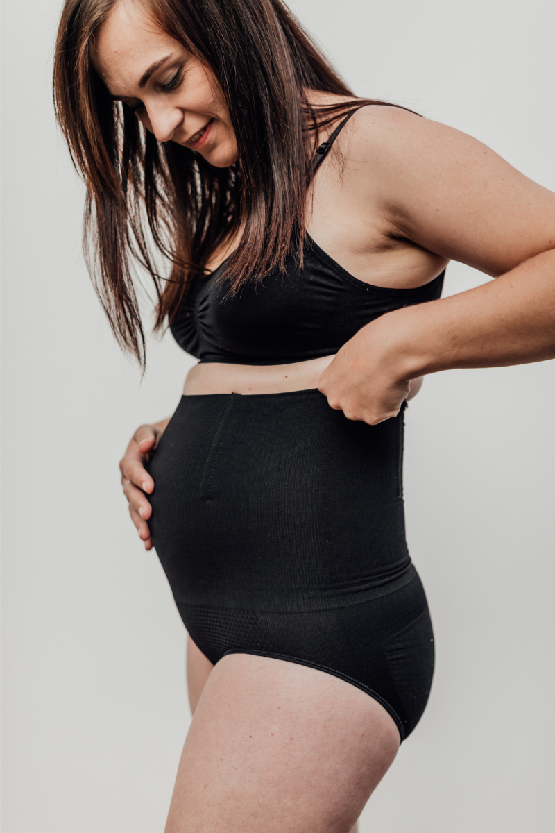 Our super comfortable high waisted braced, boned support & super elastic maternity panty has a 360º wrap.
