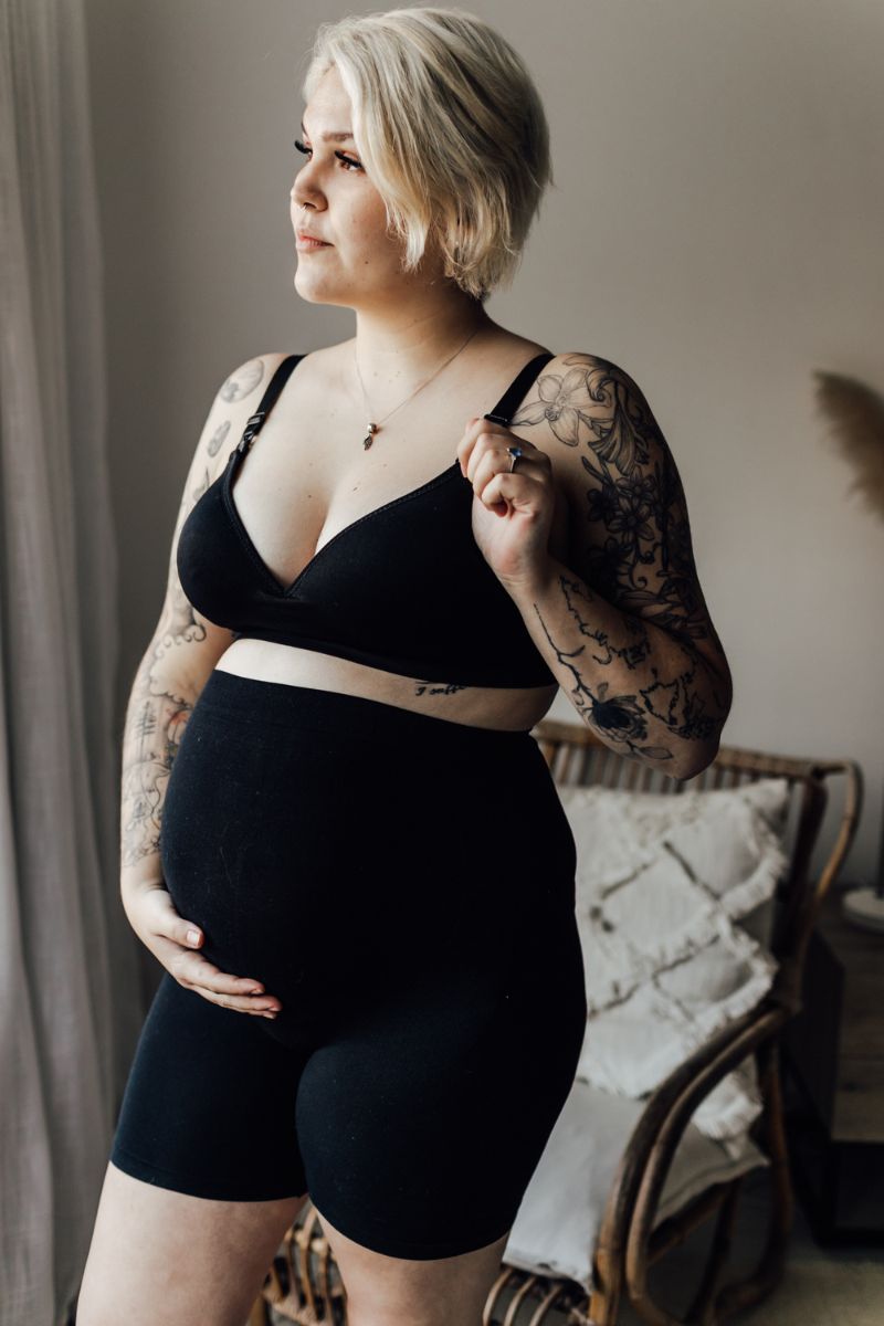 Our seamless high-rise maternity spanks provides our moms with a light weight fabric, super comfortable and supportive full bottom, high-rise to cover all. Keeping our moms looking and feeling great, both during pregnancy and after birth.